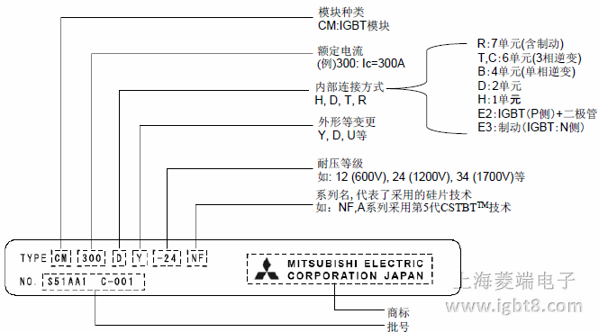 三菱電機(jī)IGBT模塊的命名方法: